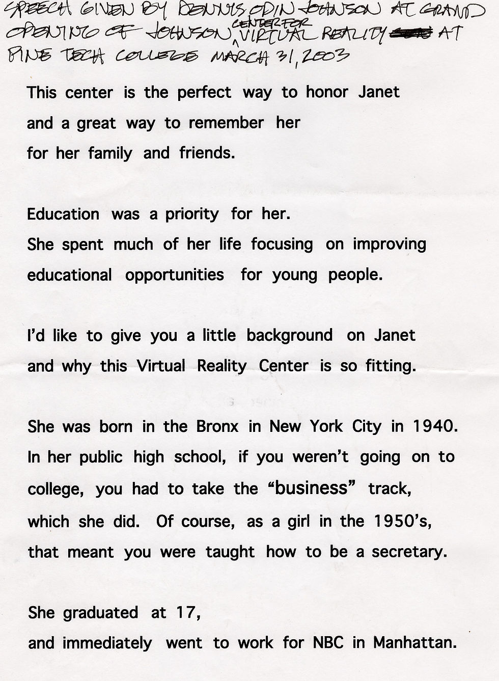 Pine Tech will be the first educational institution statewide to implement a VR center, which will be named the Janet Johnson Center for Virtual Reality. Musgrove unveiled the name in honor of the late senators vision of technology and education.