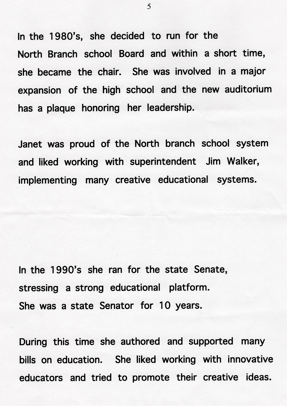 The center name honors the late Minnesota State Senator, Janet Johnson. Senator Johnson was a strong advocate for Pine Technical College and public education during her whole distinguished political career. Her untimely and sudden death in August of 1999 was a deep loss to the state and region. We chose this way to commemorate her.